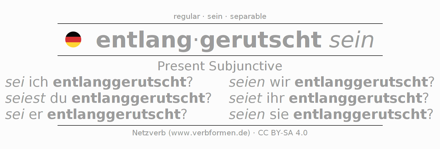 The verb entlangrutschen fully conjugated in all persons and numbers in the Subjunctive Present