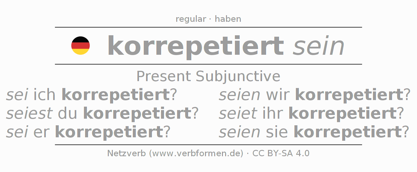 The verb korrepetieren fully conjugated in all persons and numbers in the Subjunctive Present