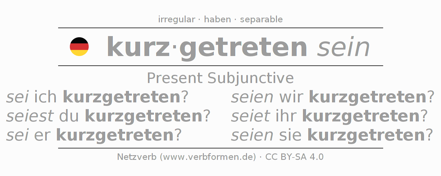 The verb kurztreten (hat) fully conjugated in all persons and numbers in the Subjunctive Present