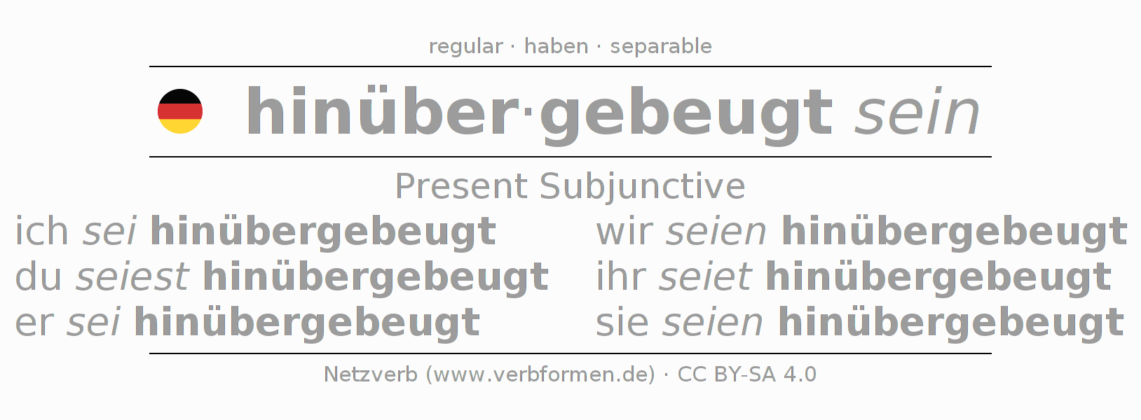 The verb hinüberbeugen fully conjugated in all persons and numbers in the Subjunctive Present