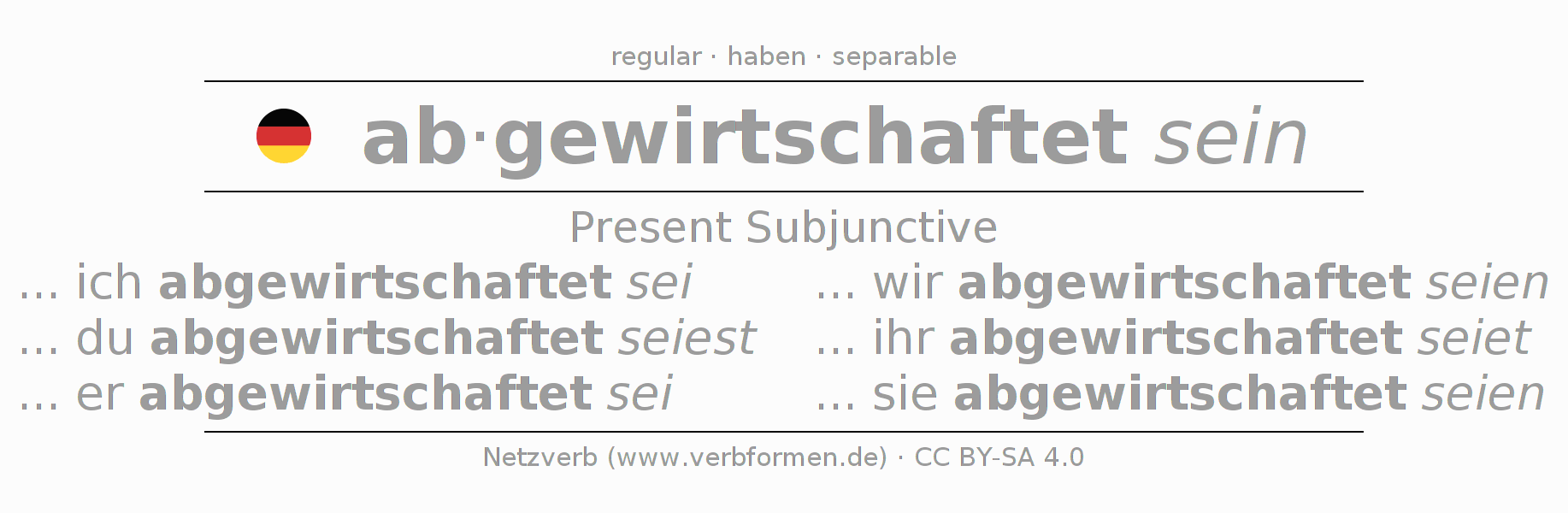 The verb abwirtschaften fully conjugated in all persons and numbers in the Subjunctive Present