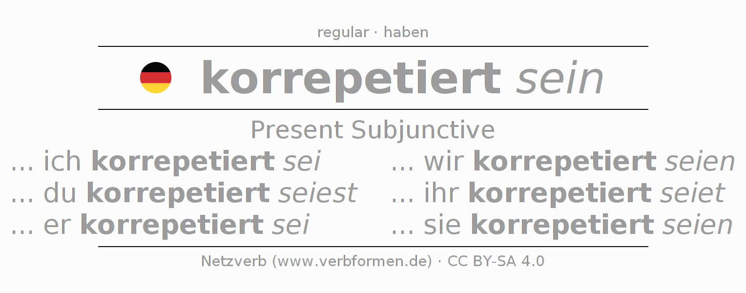 The verb korrepetieren fully conjugated in all persons and numbers in the Subjunctive Present