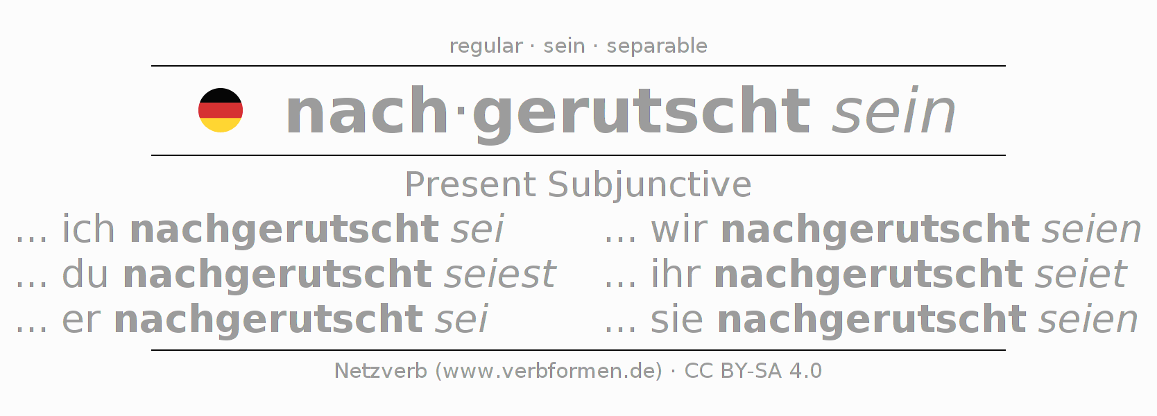 The verb nachrutschen fully conjugated in all persons and numbers in the Subjunctive Present