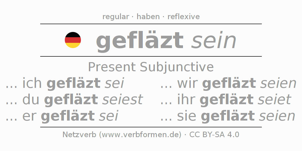 The verb sich fläzen fully conjugated in all persons and numbers in the Subjunctive Present