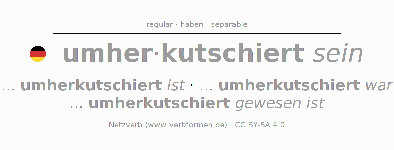 The verb umherkutschieren (hat) fully conjugated in all persons and numbers in the Subjunctive Present