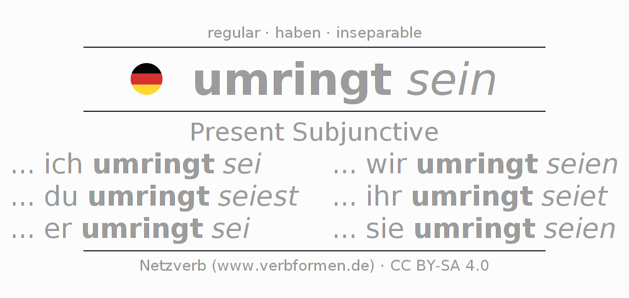 The verb umringen fully conjugated in all persons and numbers in the Subjunctive Present