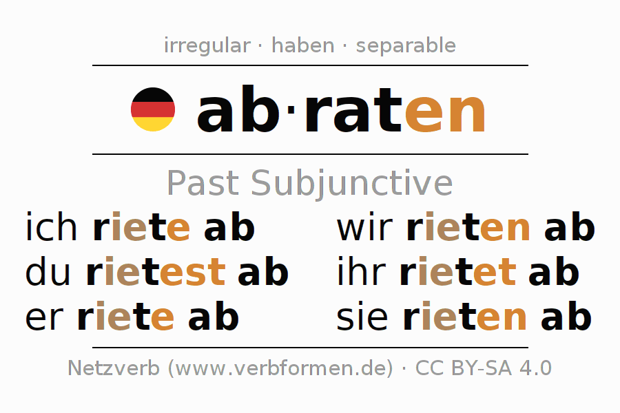 The verb abraten fully conjugated in all persons and numbers in the Subjunctive Imperfect