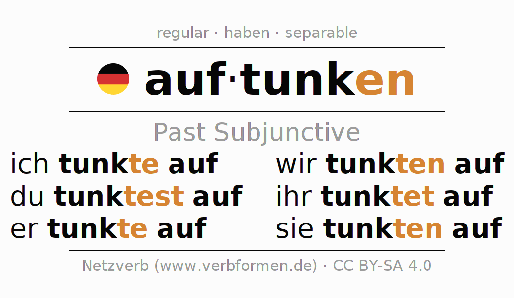 The verb auftunken fully conjugated in all persons and numbers in the Subjunctive Imperfect