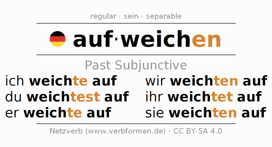 The verb aufweichen fully conjugated in all persons and numbers in the Subjunctive Imperfect