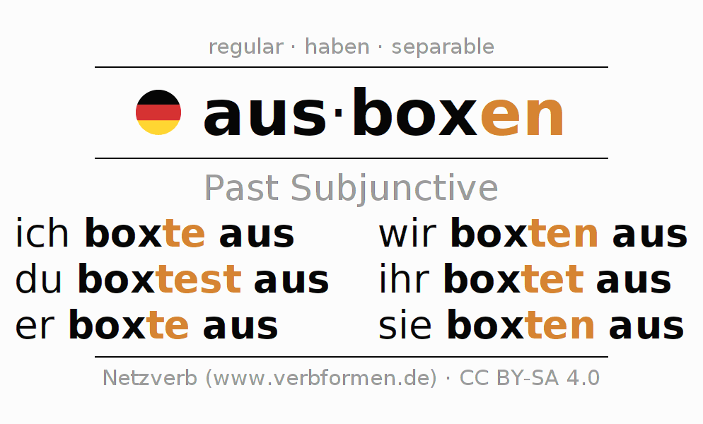 The verb ausboxen fully conjugated in all persons and numbers in the Subjunctive Imperfect