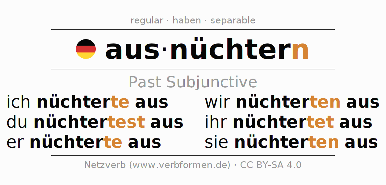 The verb ausnüchtern fully conjugated in all persons and numbers in the Subjunctive Imperfect