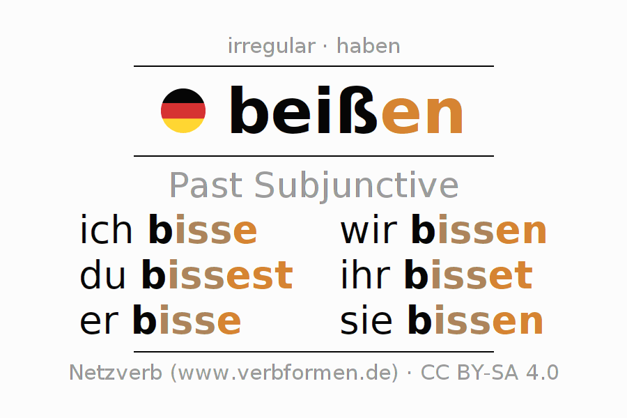 The verb beißen fully conjugated in all persons and numbers in the Subjunctive Imperfect