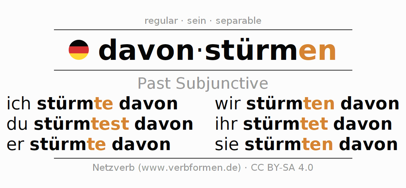 The verb davonstürmen fully conjugated in all persons and numbers in the Subjunctive Imperfect