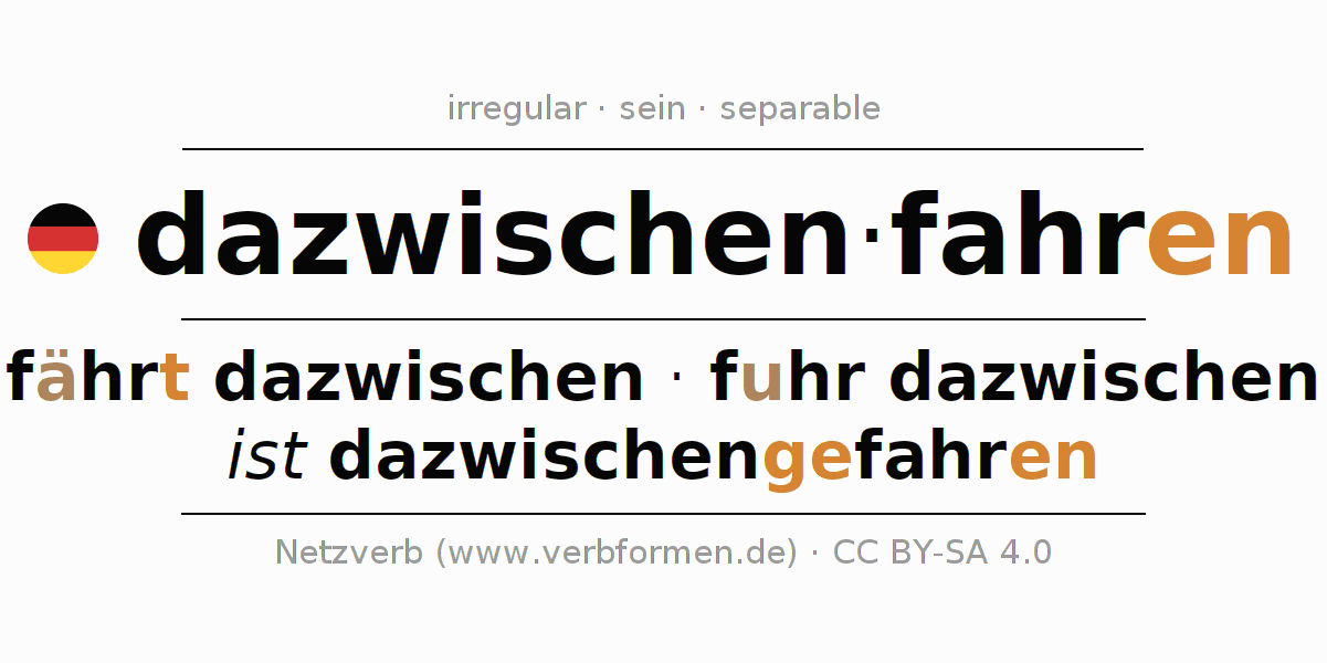 The verb dazwischenfahren fully conjugated in all persons and numbers in the Subjunctive Imperfect