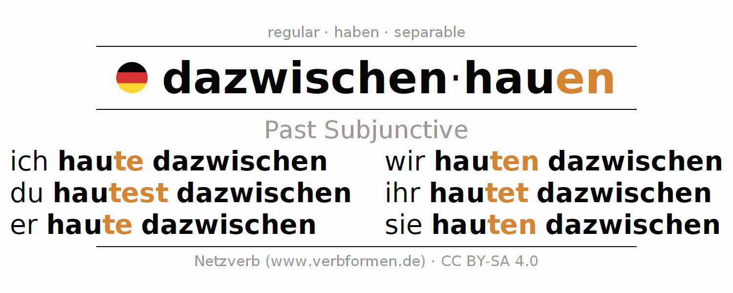 The verb dazwischenhauen fully conjugated in all persons and numbers in the Subjunctive Imperfect