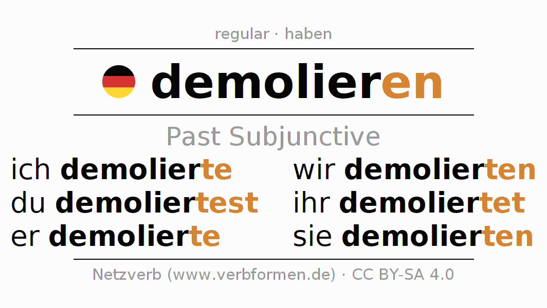 The verb demolieren fully conjugated in all persons and numbers in the Subjunctive Imperfect