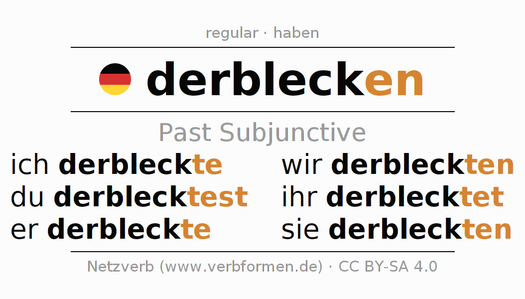 The verb derblecken fully conjugated in all persons and numbers in the Subjunctive Imperfect