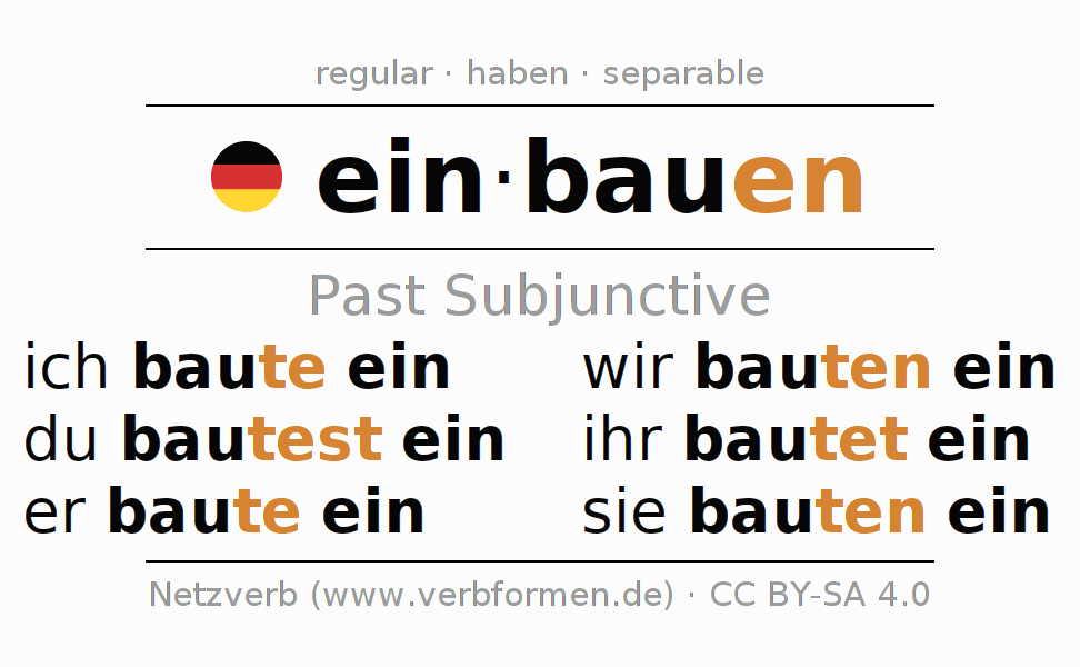 The verb einbauen fully conjugated in all persons and numbers in the Subjunctive Imperfect