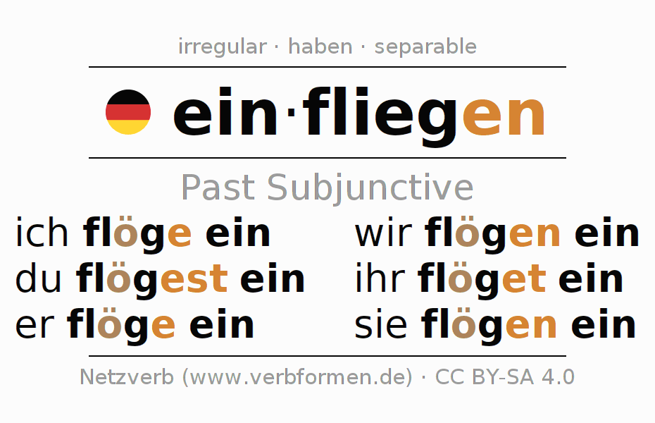 The verb einfliegen fully conjugated in all persons and numbers in the Subjunctive Imperfect