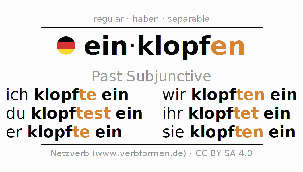 The verb einklopfen fully conjugated in all persons and numbers in the Subjunctive Imperfect