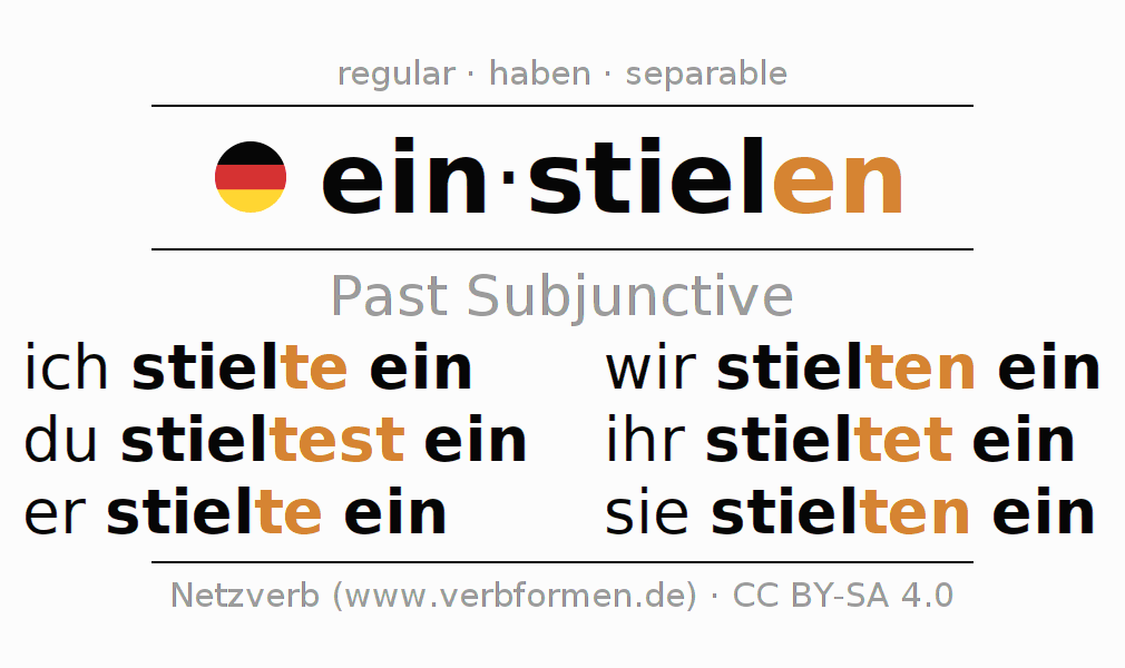 The verb einstielen fully conjugated in all persons and numbers in the Subjunctive Imperfect