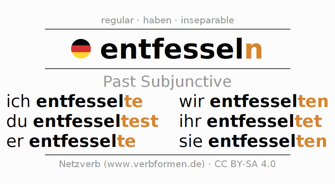 The verb entfesseln fully conjugated in all persons and numbers in the Subjunctive Imperfect