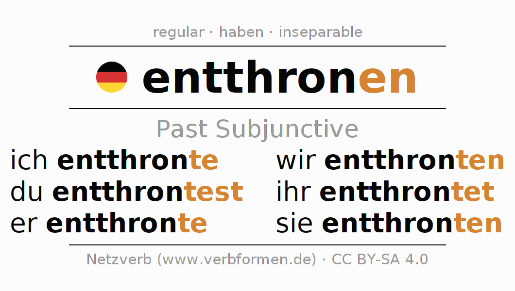 The verb entthronen fully conjugated in all persons and numbers in the Subjunctive Imperfect