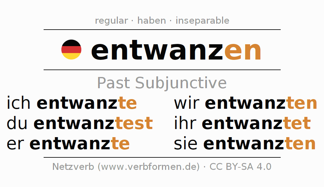 The verb entwanzen fully conjugated in all persons and numbers in the Subjunctive Imperfect