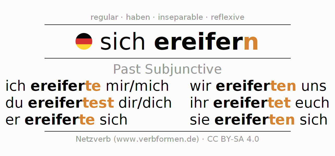 The verb sich ereifern fully conjugated in all persons and numbers in the Subjunctive Imperfect