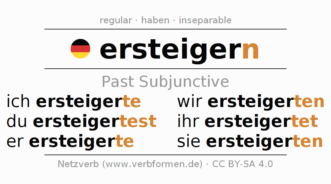 The verb ersteigern fully conjugated in all persons and numbers in the Subjunctive Imperfect