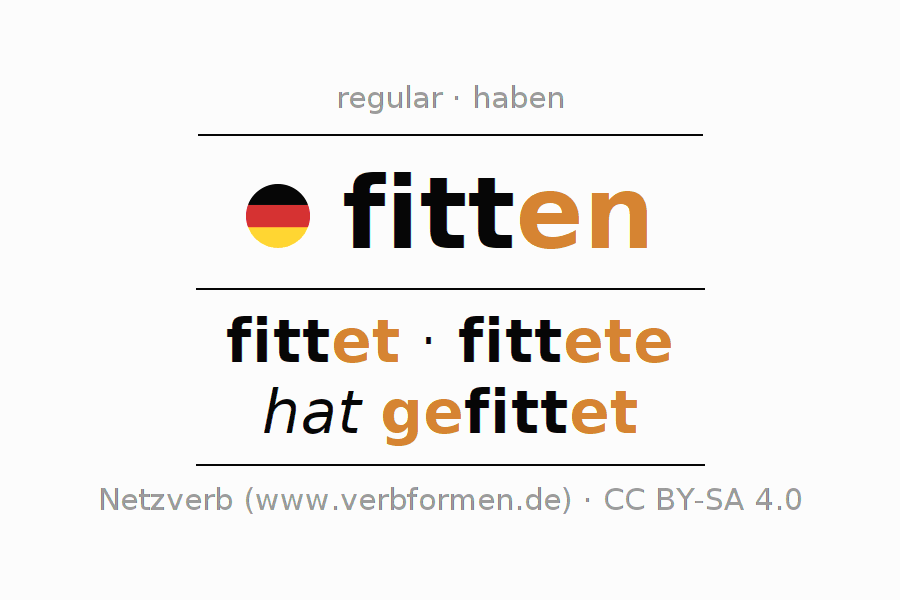 The conjugation of fitten (fit, adapt) in subjunctive II is: ich fittete, du fittetest, er fittete, wir fitteten, ihr fittetet, sie fitteten. As a regular verb the unmodified stem fitt is used. The subjunctive endings -ete, -etest, -ete, -eten, -etet, -eten are appended to this stem. The endings are extended by "e", as the stem ends on -t. The conjugation of these forms conforms to the grammatical rules for verbs in the subjunctive II tense.