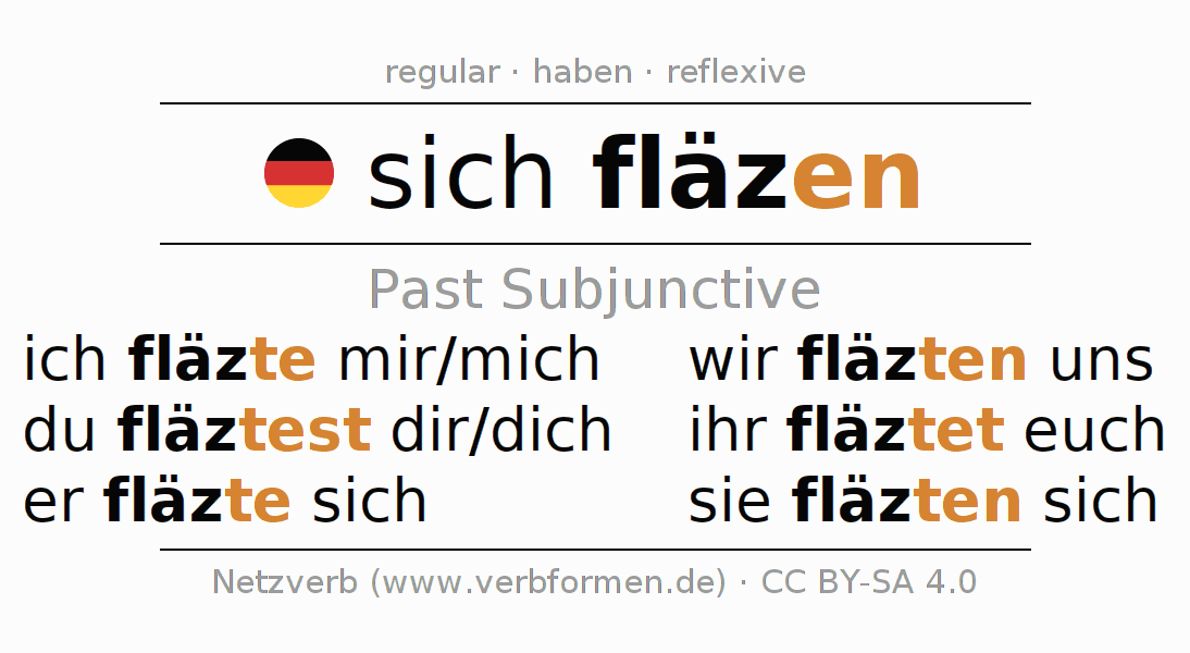 The verb sich fläzen fully conjugated in all persons and numbers in the Subjunctive Imperfect