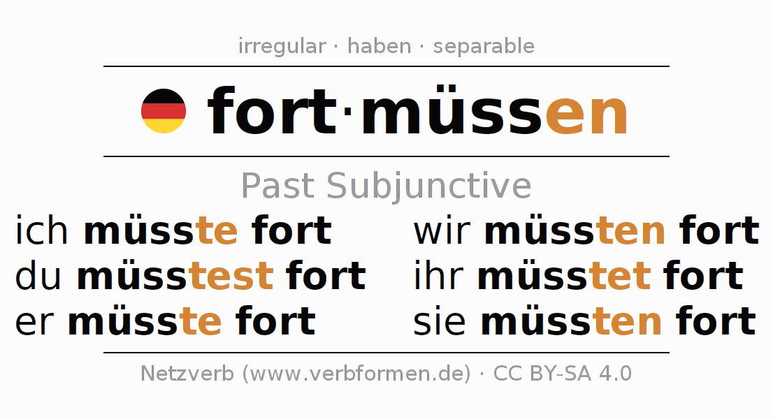 The verb fortmüssen fully conjugated in all persons and numbers in the Subjunctive Imperfect