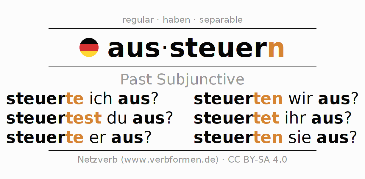 The verb aussteuern fully conjugated in all persons and numbers in the Subjunctive Imperfect