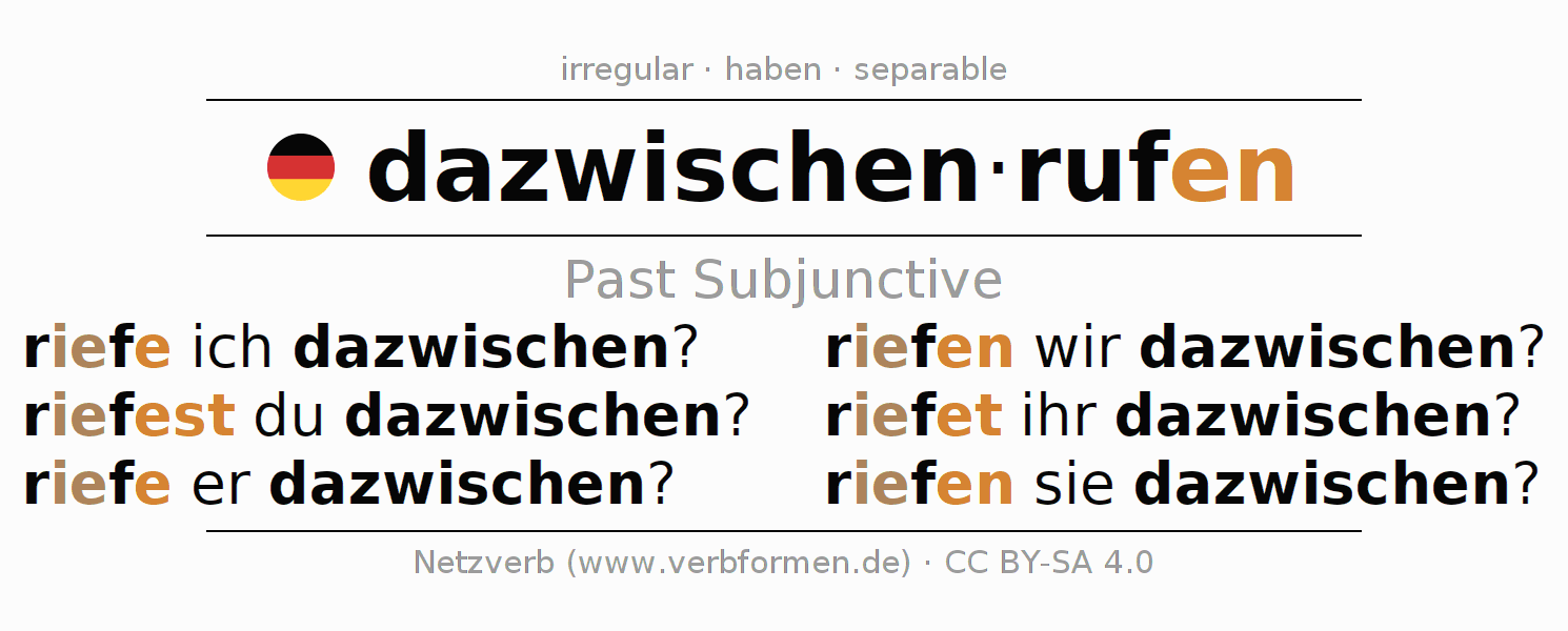 The verb dazwischenrufen fully conjugated in all persons and numbers in the Subjunctive Imperfect