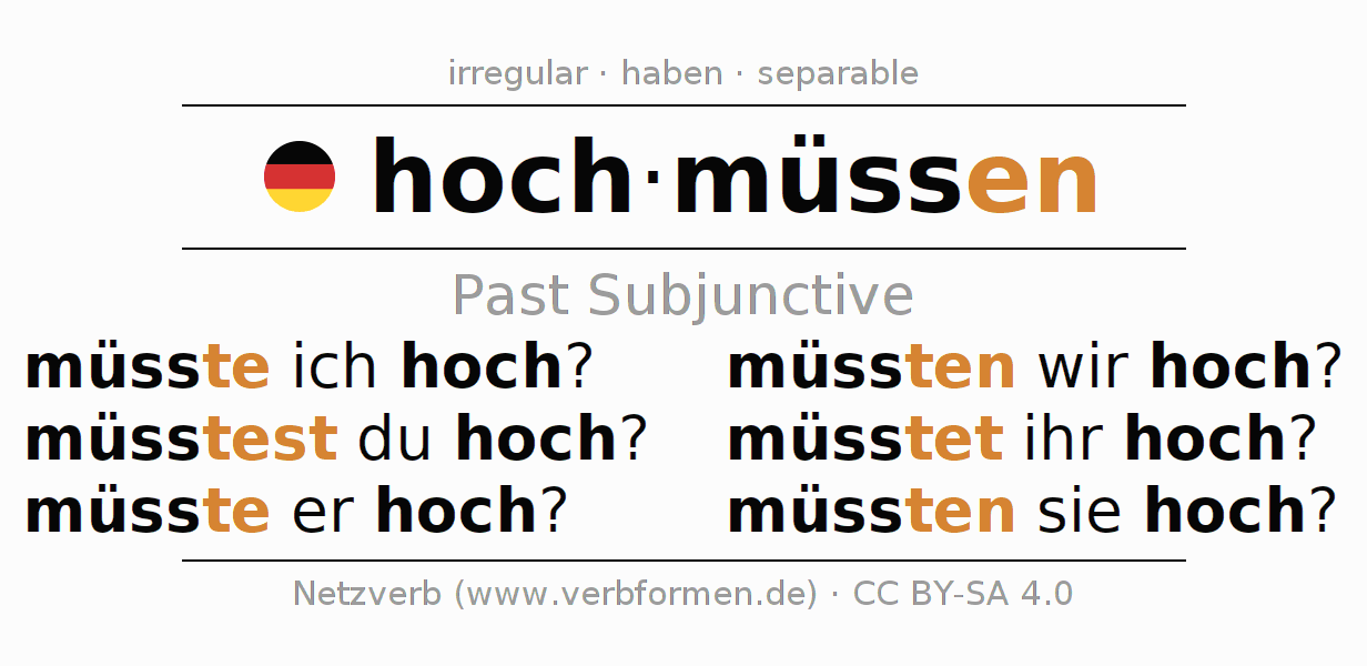 The verb hochmüssen fully conjugated in all persons and numbers in the Subjunctive Imperfect