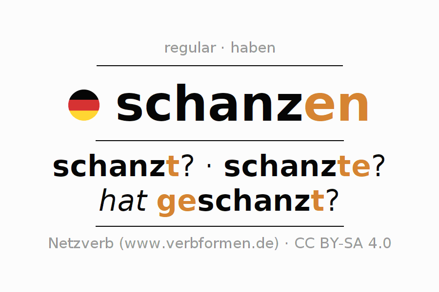 The conjugation of schanzen in Subjunctive Imperfect Form of possibility Active is schanzte ich?, schanztest du?, schanzte er?, schanzten wir?, schanztet ihr?, schanzten sie?.The conjugation corresponds to certain grammatical rules. Likewise the requirements for the conjugation of the simple verb forms of schanzen in Imperfect Subjunctive. Comments ☆
