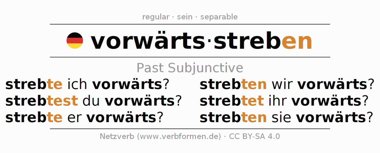 The verb vorwärtsstreben fully conjugated in all persons and numbers in the Subjunctive Imperfect
