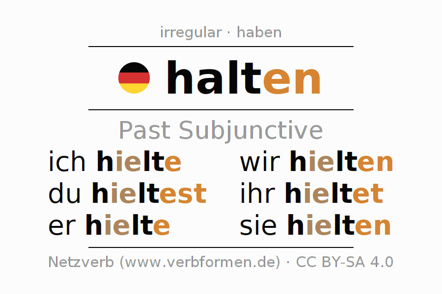 The verb halten fully conjugated in all persons and numbers in the Subjunctive Imperfect