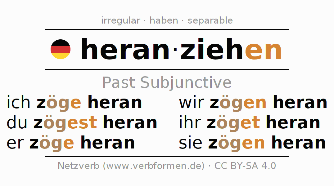 The verb heranziehen fully conjugated in all persons and numbers in the Subjunctive Imperfect