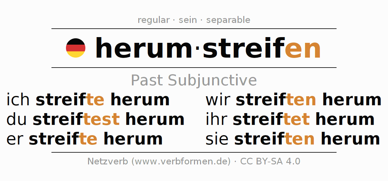 The verb herumstreifen fully conjugated in all persons and numbers in the Subjunctive Imperfect