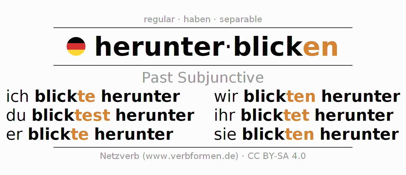 The verb herunterblicken fully conjugated in all persons and numbers in the Subjunctive Imperfect