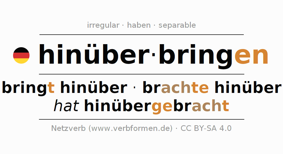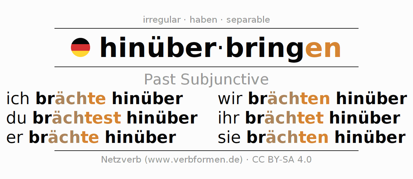The verb hinüberbringen fully conjugated in all persons and numbers in the Subjunctive Imperfect