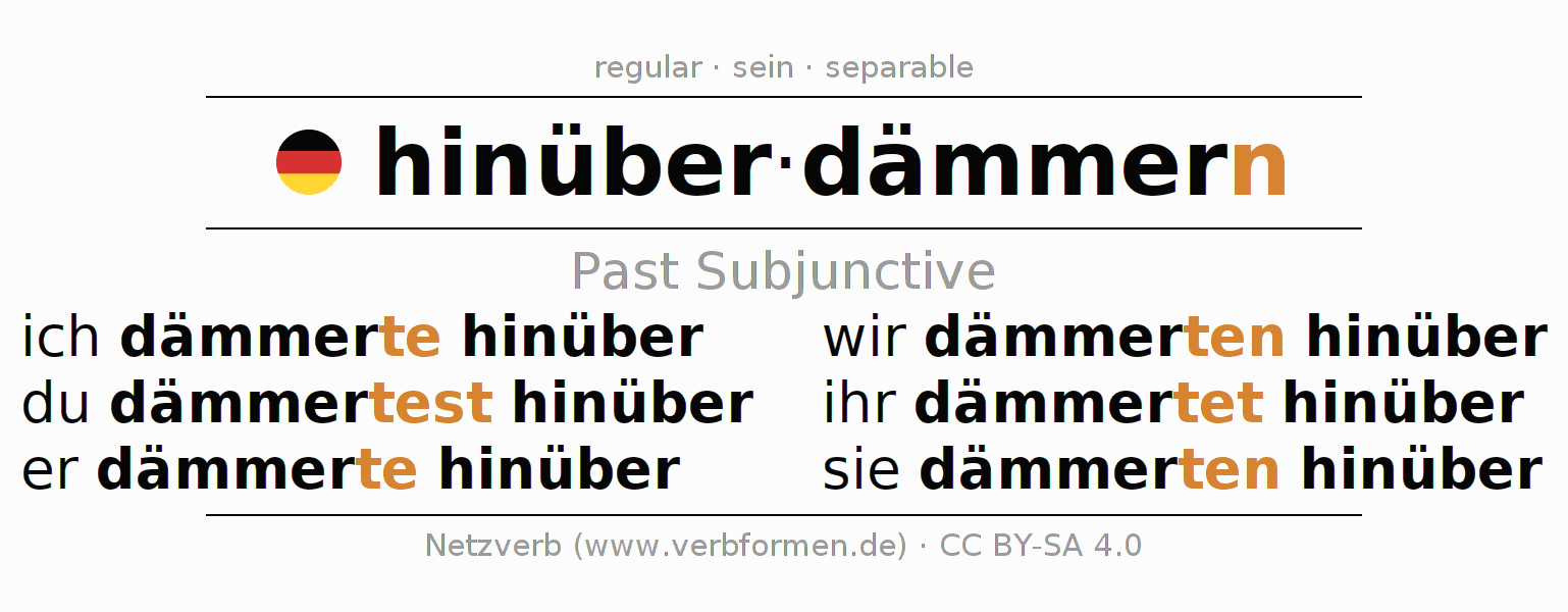 The verb hinüberdämmern fully conjugated in all persons and numbers in the Subjunctive Imperfect