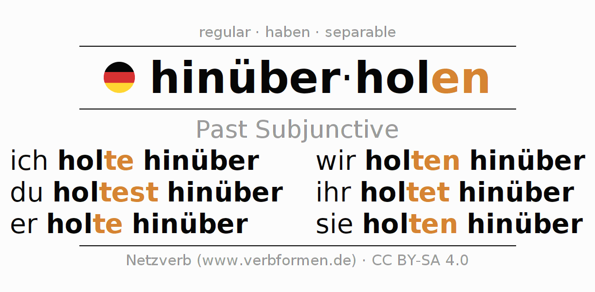 The verb hinüberholen fully conjugated in all persons and numbers in the Subjunctive Imperfect