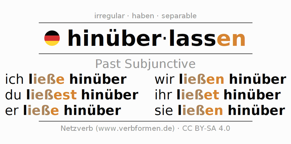 The verb hinüberlassen fully conjugated in all persons and numbers in the Subjunctive Imperfect