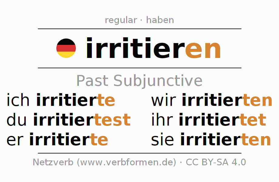 The verb irritieren fully conjugated in all persons and numbers in the Subjunctive Imperfect