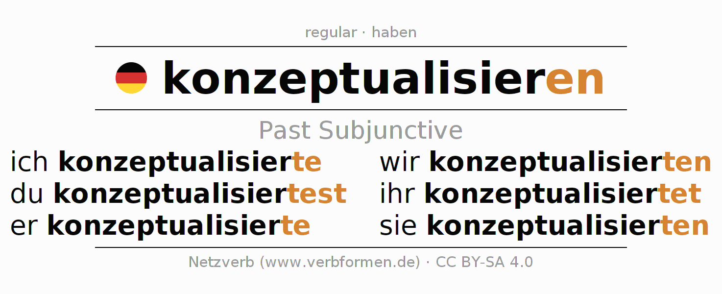 The verb konzeptualisieren fully conjugated in all persons and numbers in the Subjunctive Imperfect