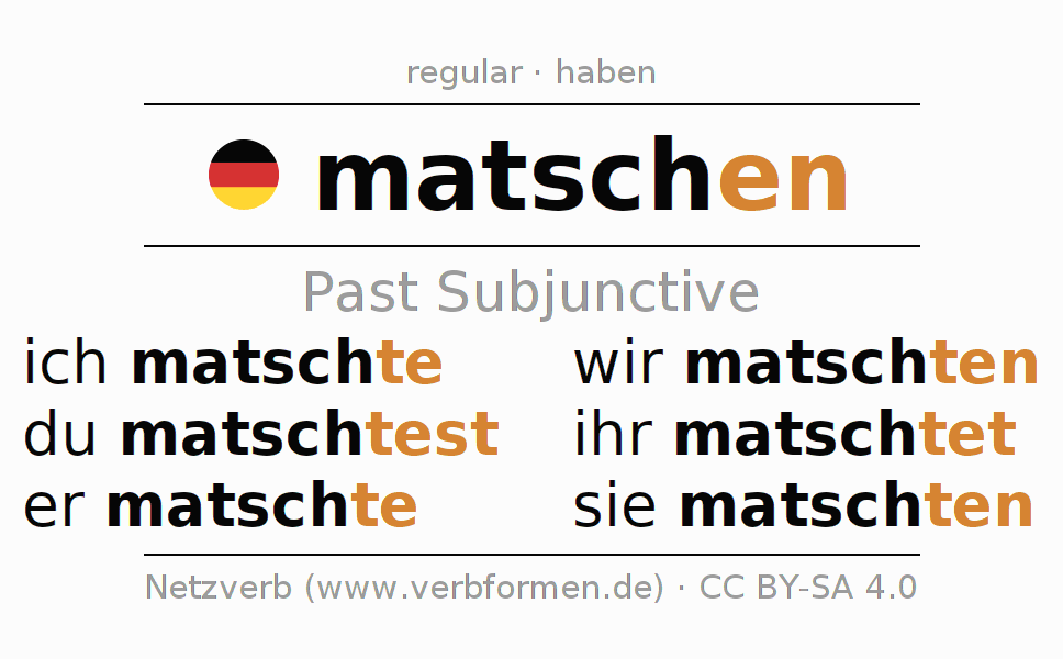 The verb matschen fully conjugated in all persons and numbers in the Subjunctive Imperfect