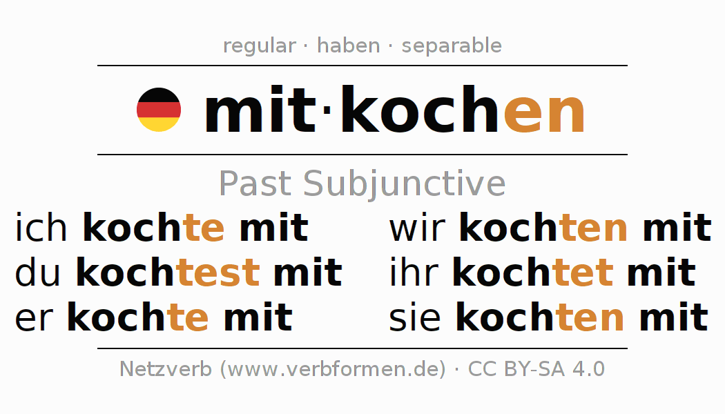 The verb mitkochen fully conjugated in all persons and numbers in the Subjunctive Imperfect